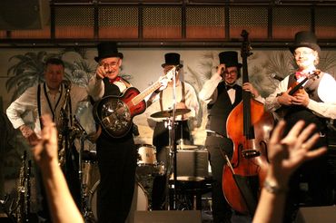 The Boneshaker Band performed at the Jazz Club - housed in an elegant Art Nouveau styled marquee.